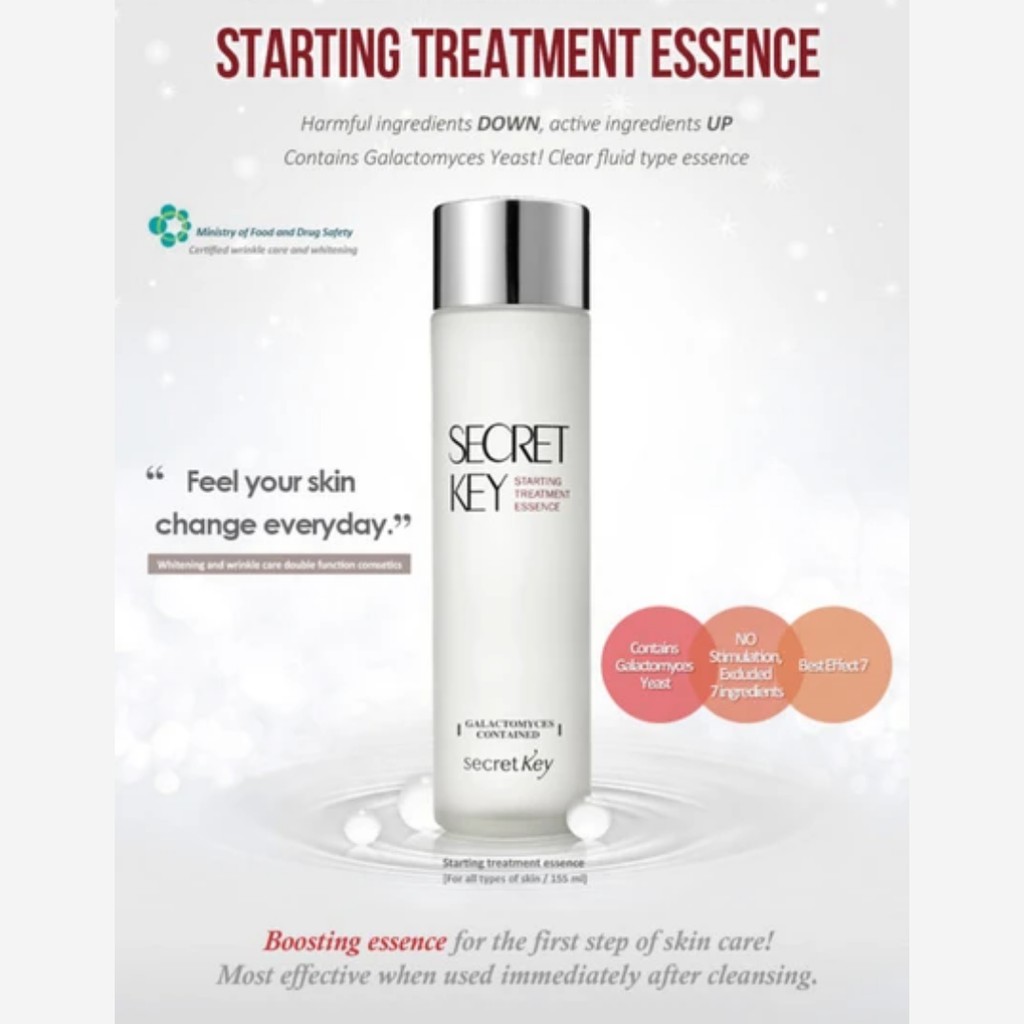 . This anti-aging starting treatment essence lavishes skin with its cult fave ingredients like the brightening antioxidant Galactomyces Ferment Filtrate and the softening conditioning Rose Water. The start ingredient it is a type a yeast byproduct of the sake brewing process. Secret Key Starting Treatment Essence Rose Edition ingredients explained.